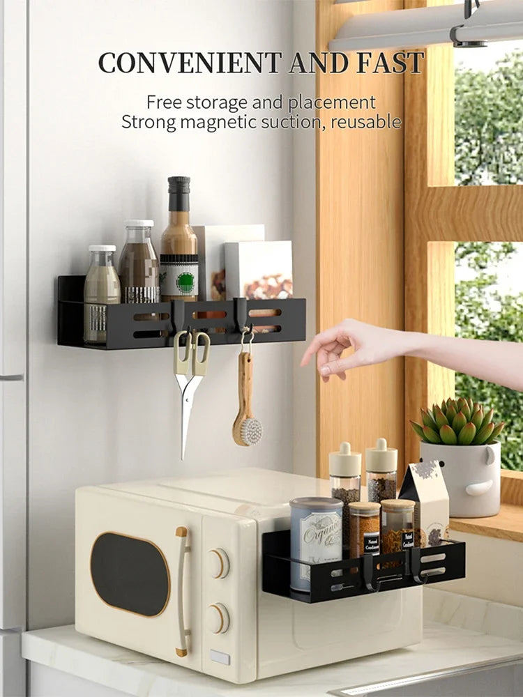 The powerful magnetic adsorption ensures a firm attachment to any iron surface, making installation a breeze. You can easily reposition or relocate the rack as needed without damaging walls or appliances. Whether it's a refrigerator, washing machine, or microwave, this rack holds fast, providing reliable storage wherever you need it.