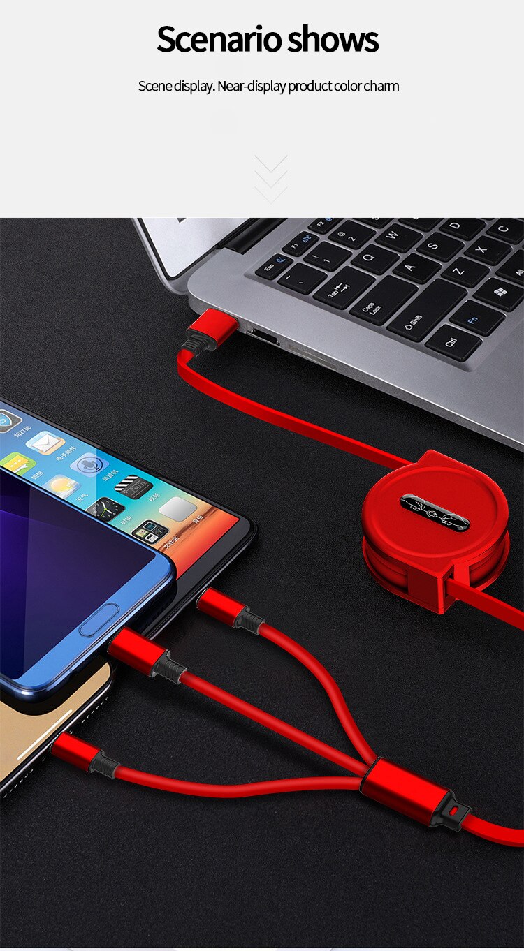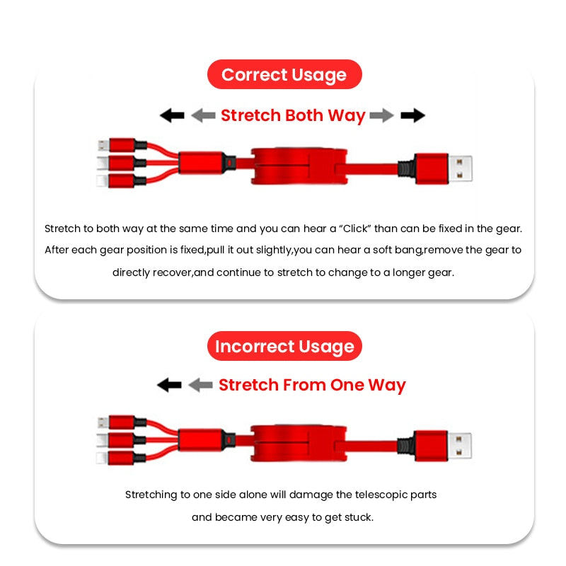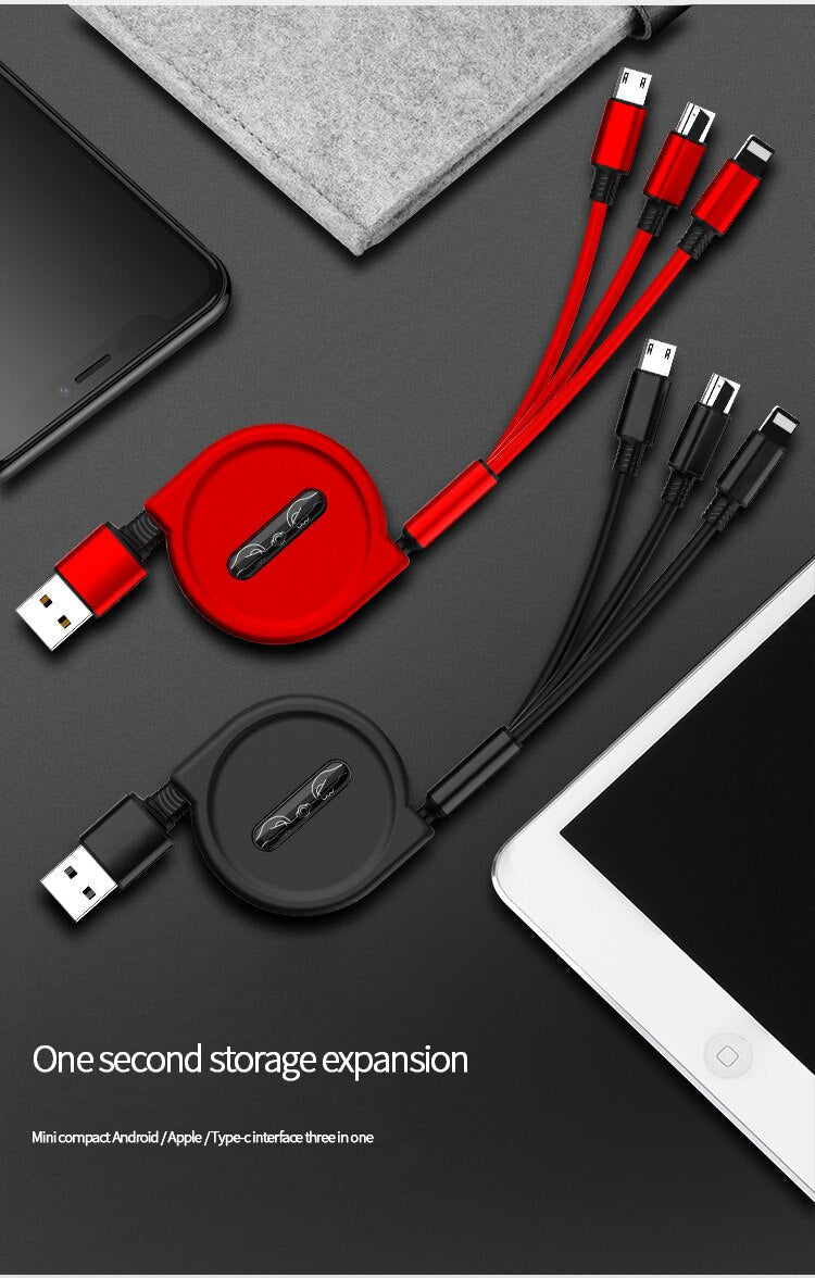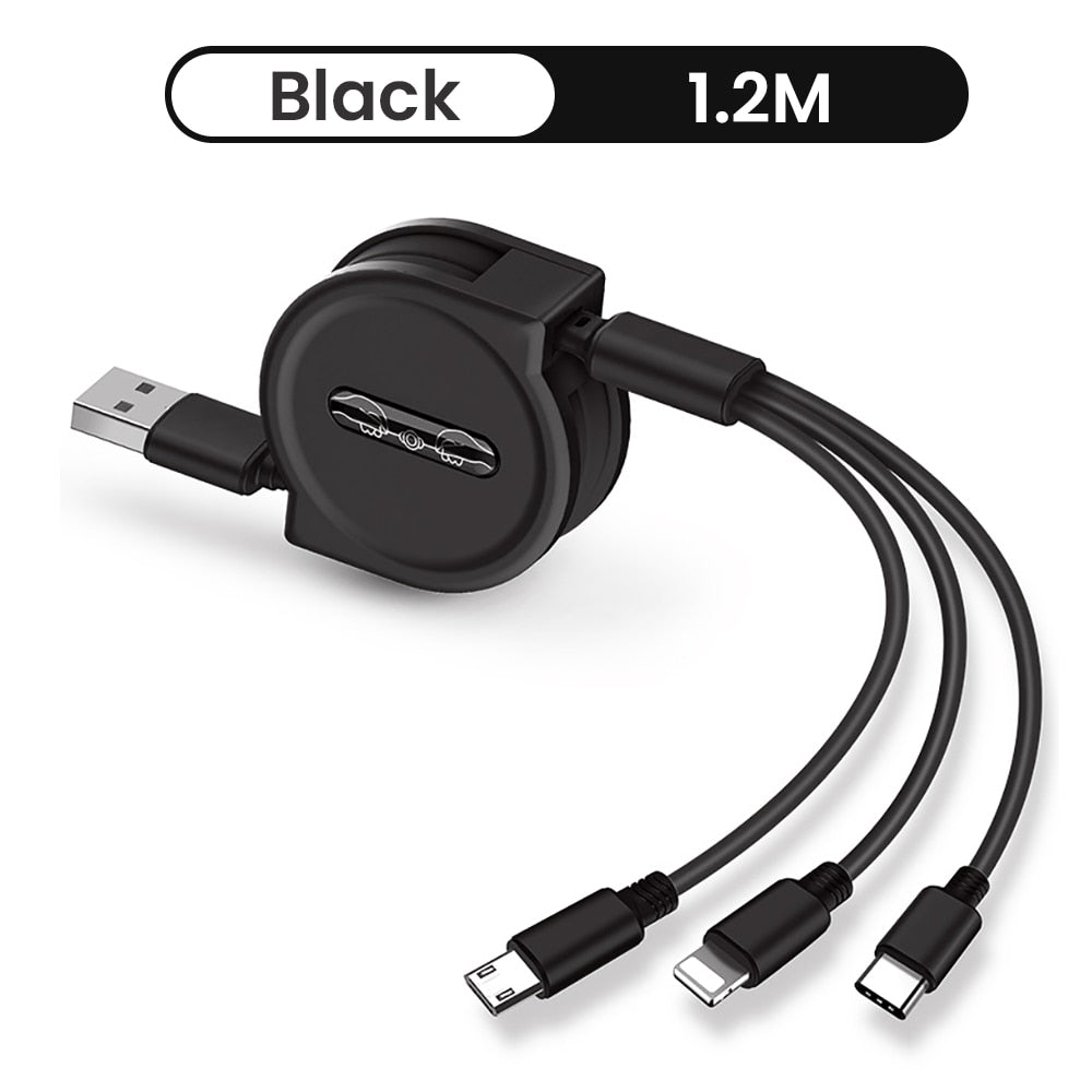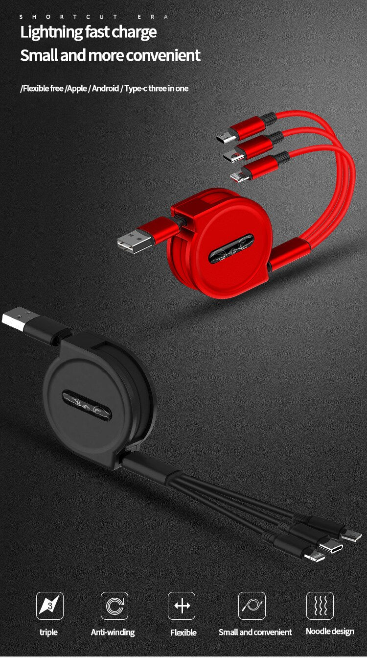 Retractable 3 In 1 USB Portable Charging Cable