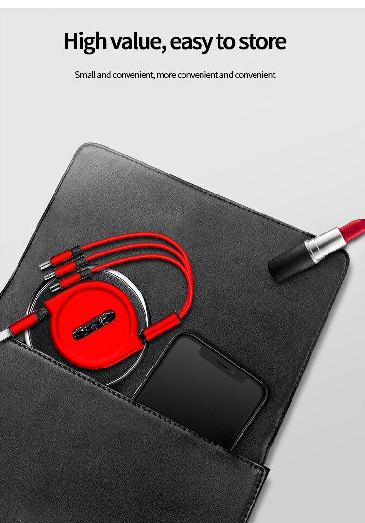 Say goodbye to messy cables! This 3-in-1 Retractable Portable Charging Cable will keep your cables in order and save a lot of space!
