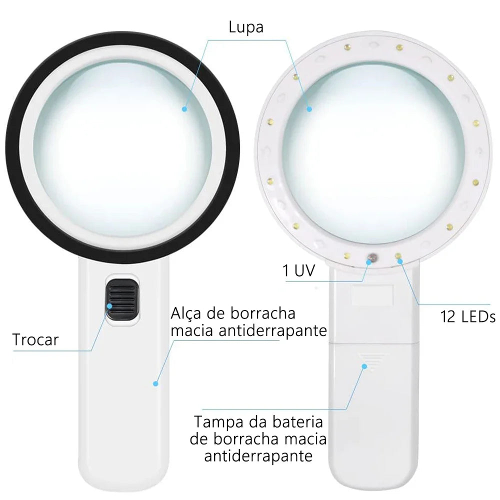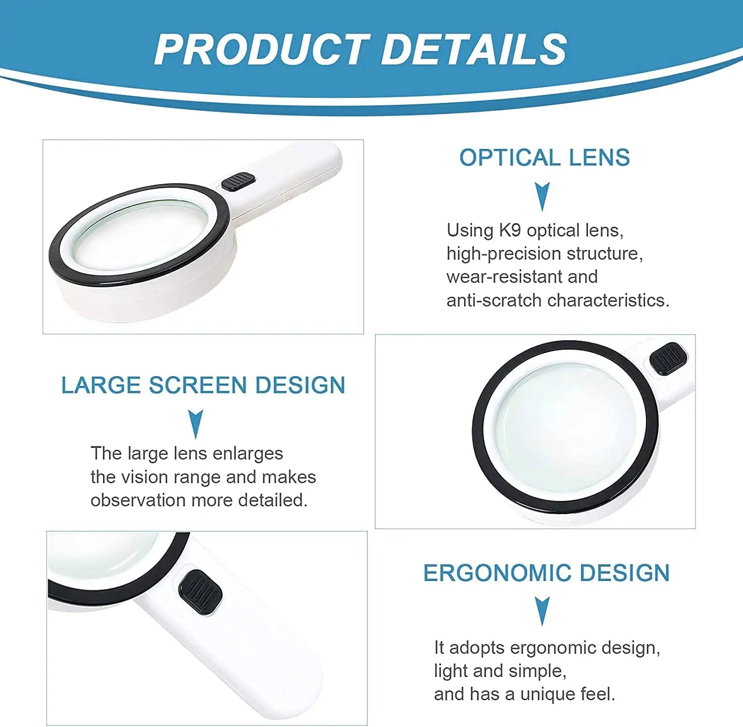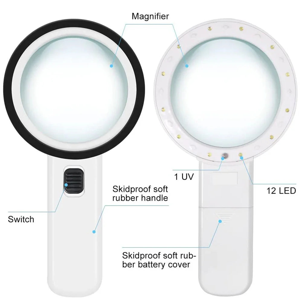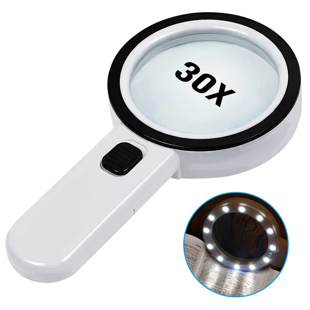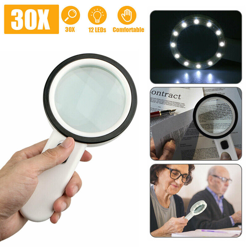 30X Handheld Illuminated Magnifier with 12 LED Lights For The Elderly