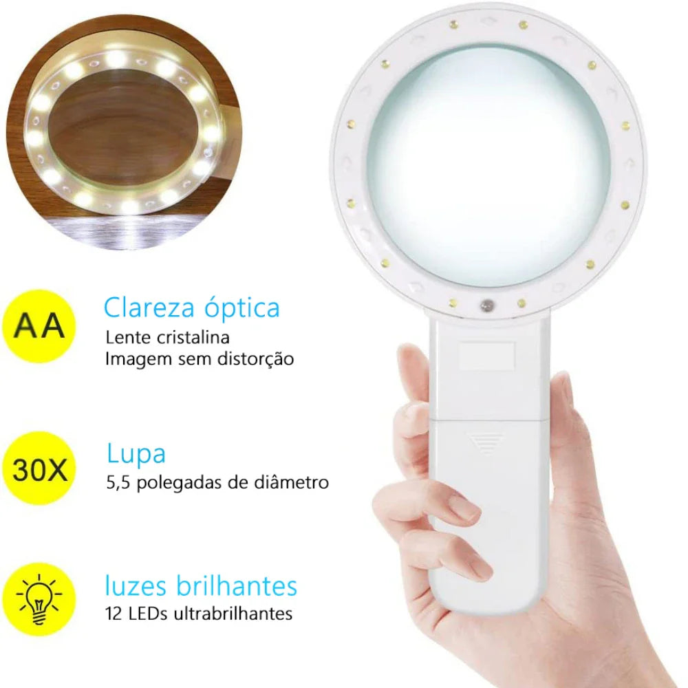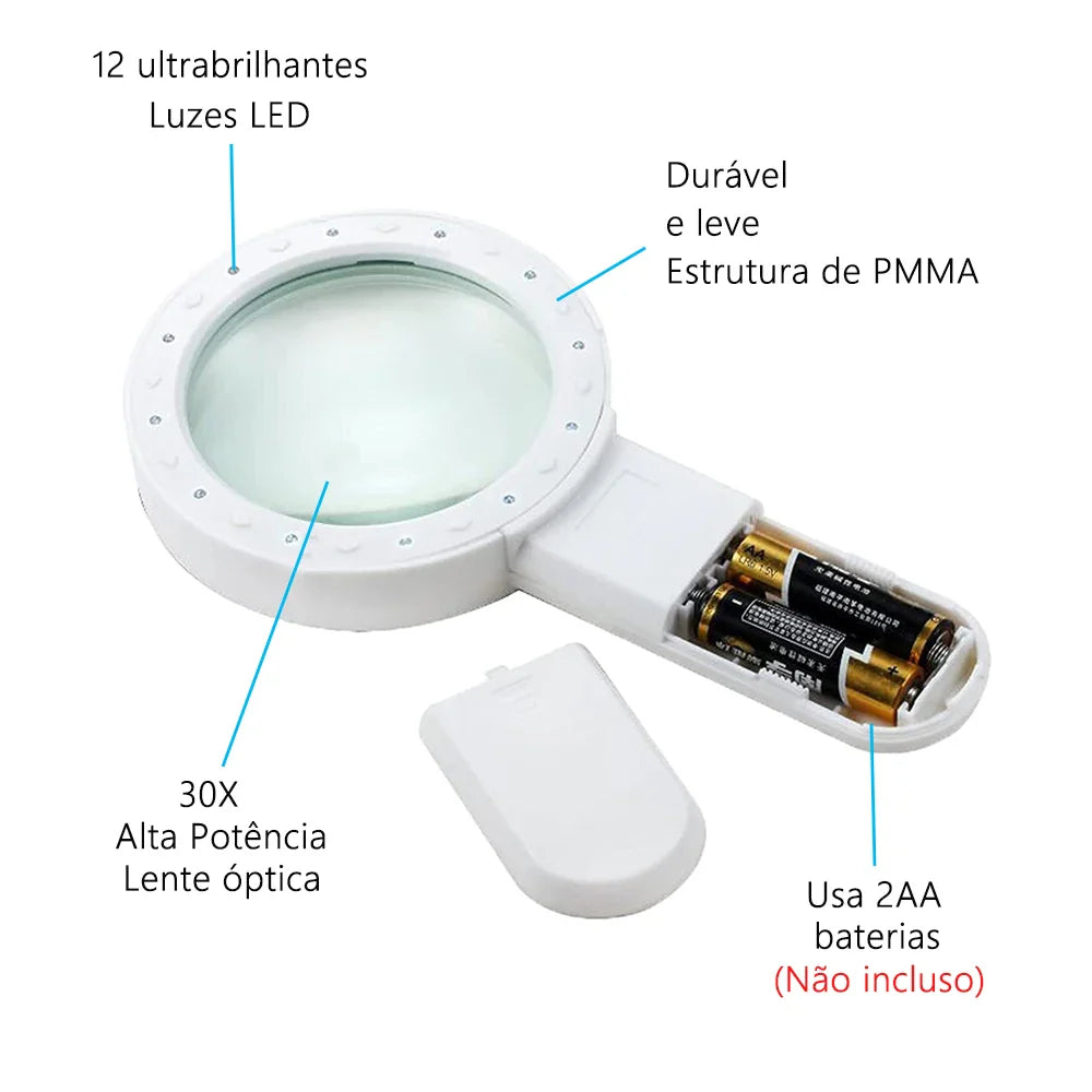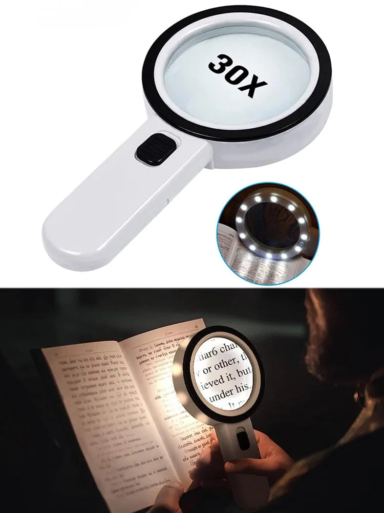 With 30X power and 12 ultra-bright LED lights, it offers clear viewing and added illumination for reading or detailed tasks.