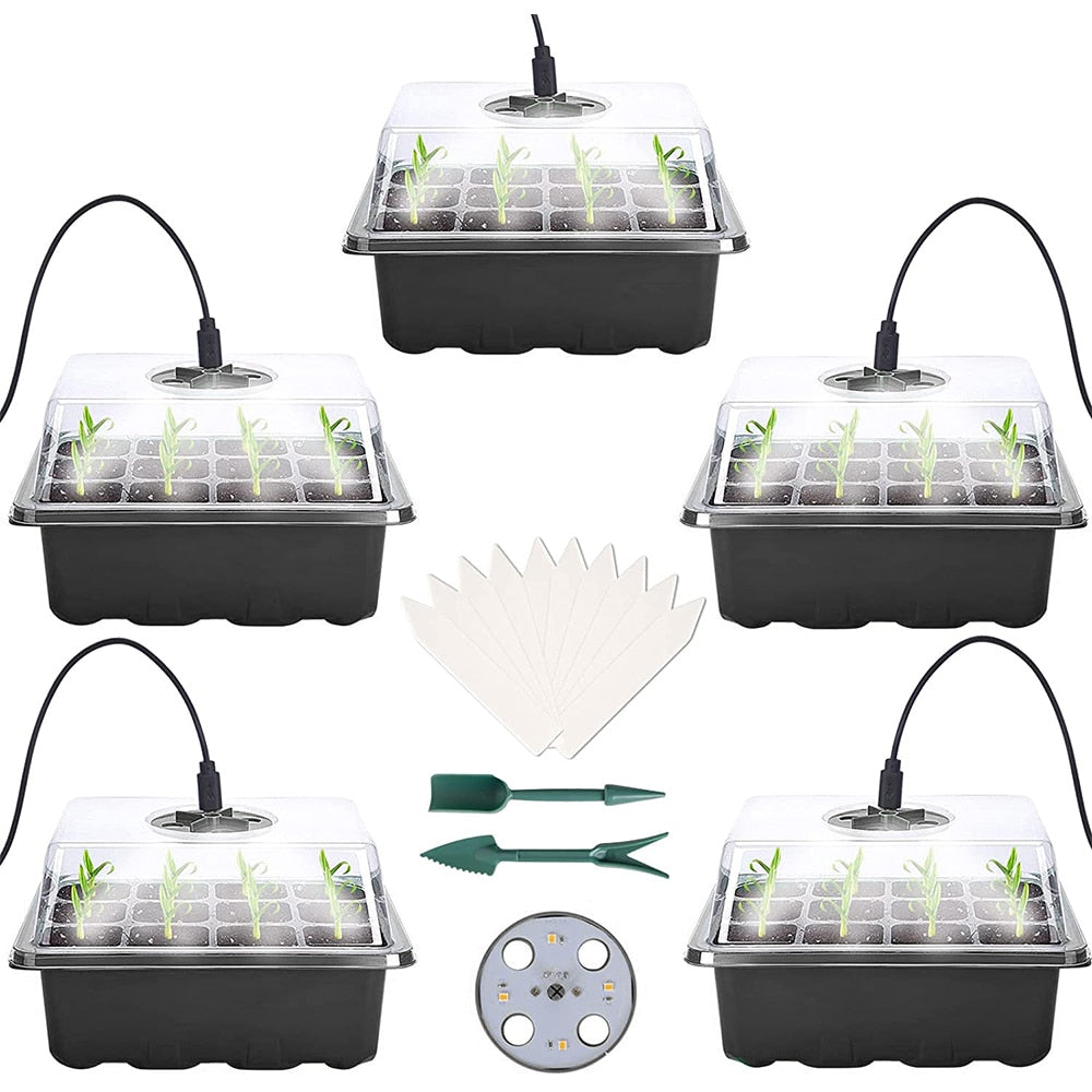 Seed Starter Trays with LED Grow Light (5pcs set)