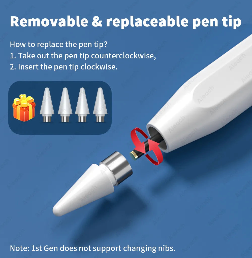 Removable & Replaceable Pen Tip: The Aieach A33 Stylus Pen comes with a removable and replaceable pen tip. To replace the pen tip, simply follow these steps: 1. Take out the pen tip counterclockwise. 2. Insert the new pen tip clockwise. This feature extends the lifespan of the stylus, ensuring consistent performance over time.