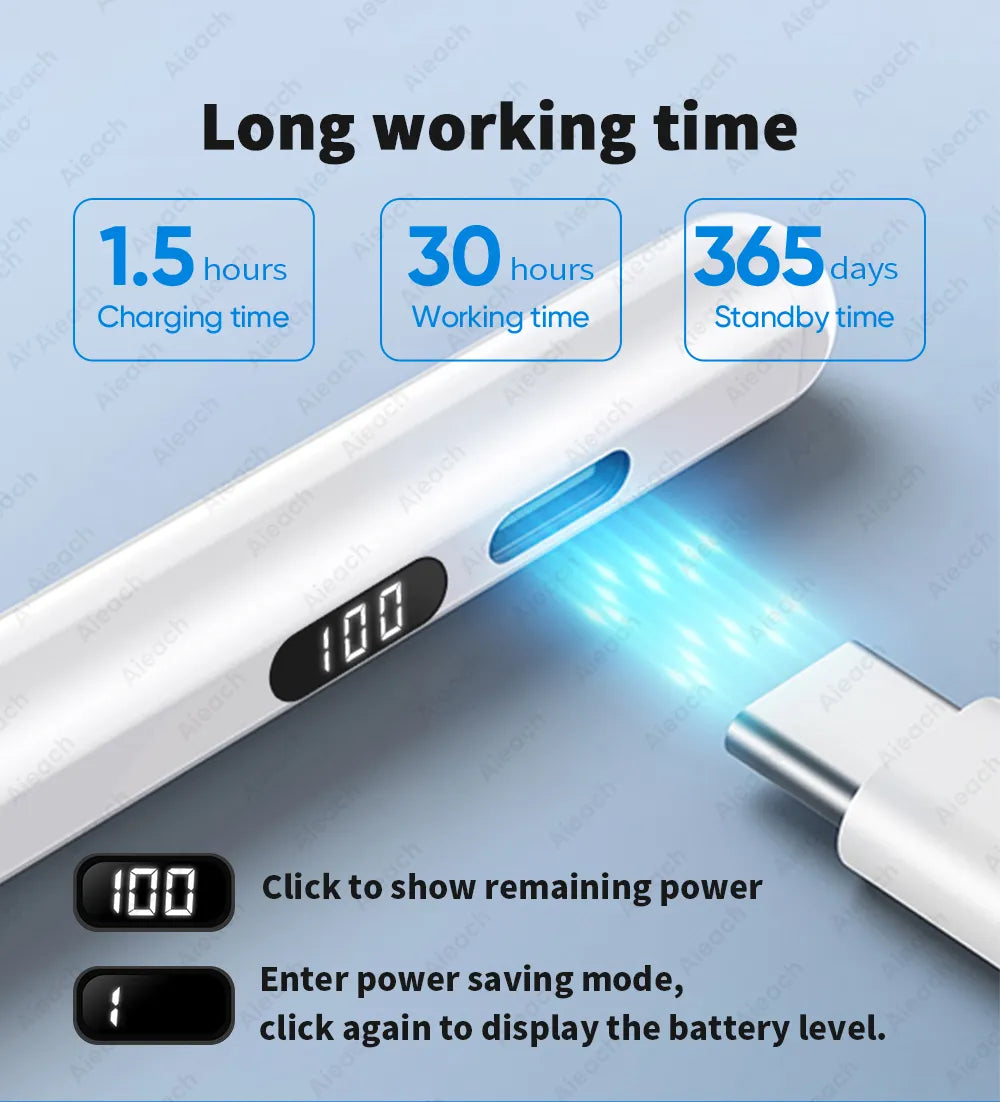 LED Power Display: The Aieach A33 Stylus Pen features a digital LED screen for real-time power monitoring. Stay informed about the remaining battery and charge it in time for uninterrupted productivity and creativity. Take control of your stylus experience with the LED Power Display.