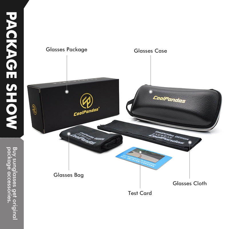 Comprehensive Package for Your Convenience: Each pair of sunglasses comes with a complete package to enhance your experience. The package includes a protective box to store your sunglasses, a cleaning cloth to keep your lenses pristine, a card for additional information, and of course, the sunglasses themselves.