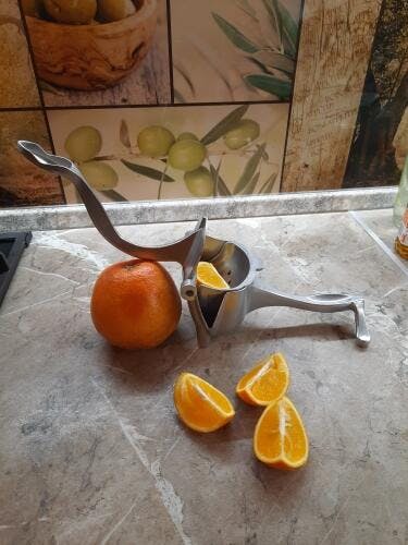 Premium Quality Our Citrus Squeezer Is Made With Sturdy Industrial Aluminum, It’s Durable And Will Not Rust In Reaction To Juices. The Hand-Held Press Has An Ergonomic Design For Comfort, Even A Kid Can Use This Citrus Press.
