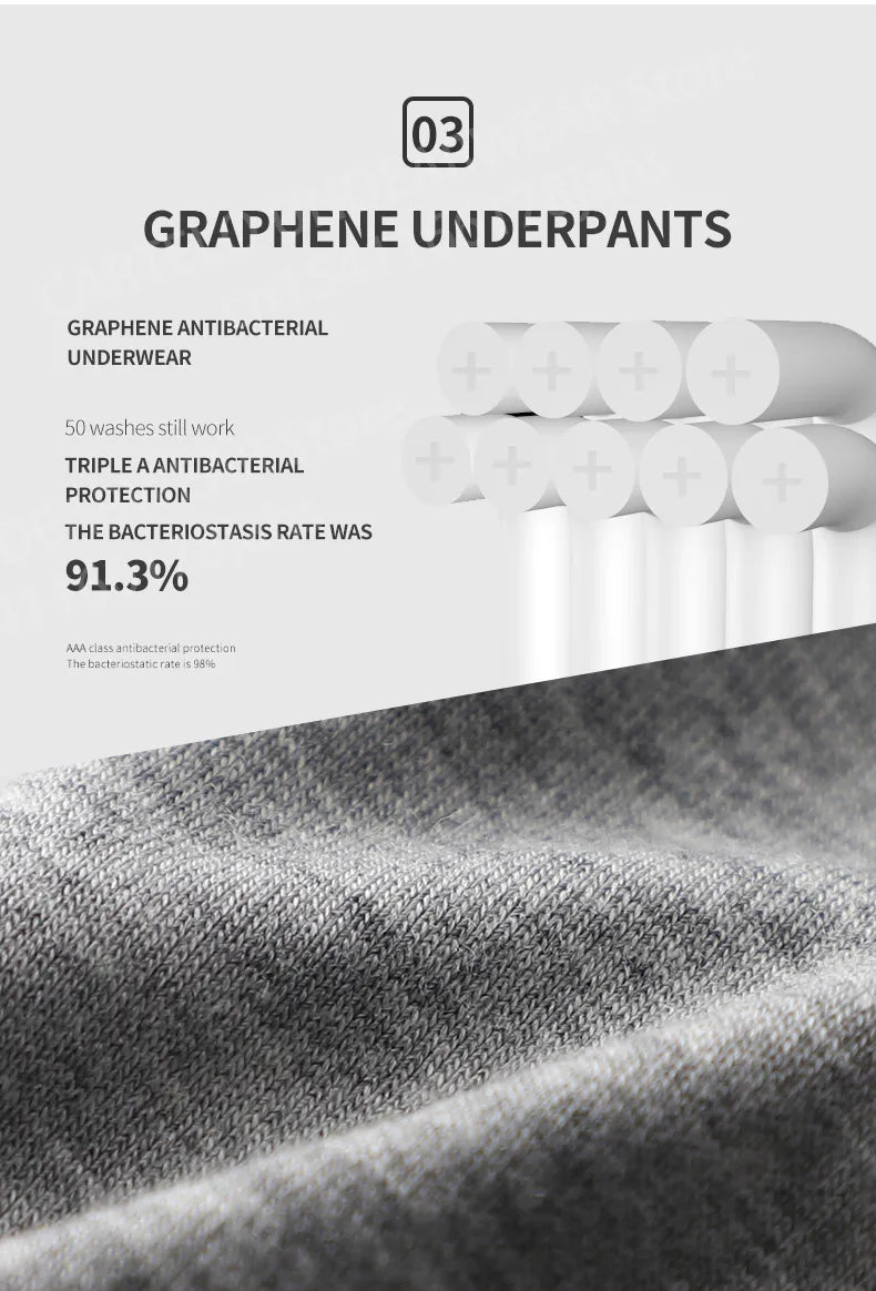 Graphene Underpants: Step into the future with our graphene-infused underpants. This cutting-edge addition enhances the fabric's thermal conductivity, ensuring optimal temperature regulation. Embrace the benefits of graphene technology for a truly advanced and comfortable underwear experience.