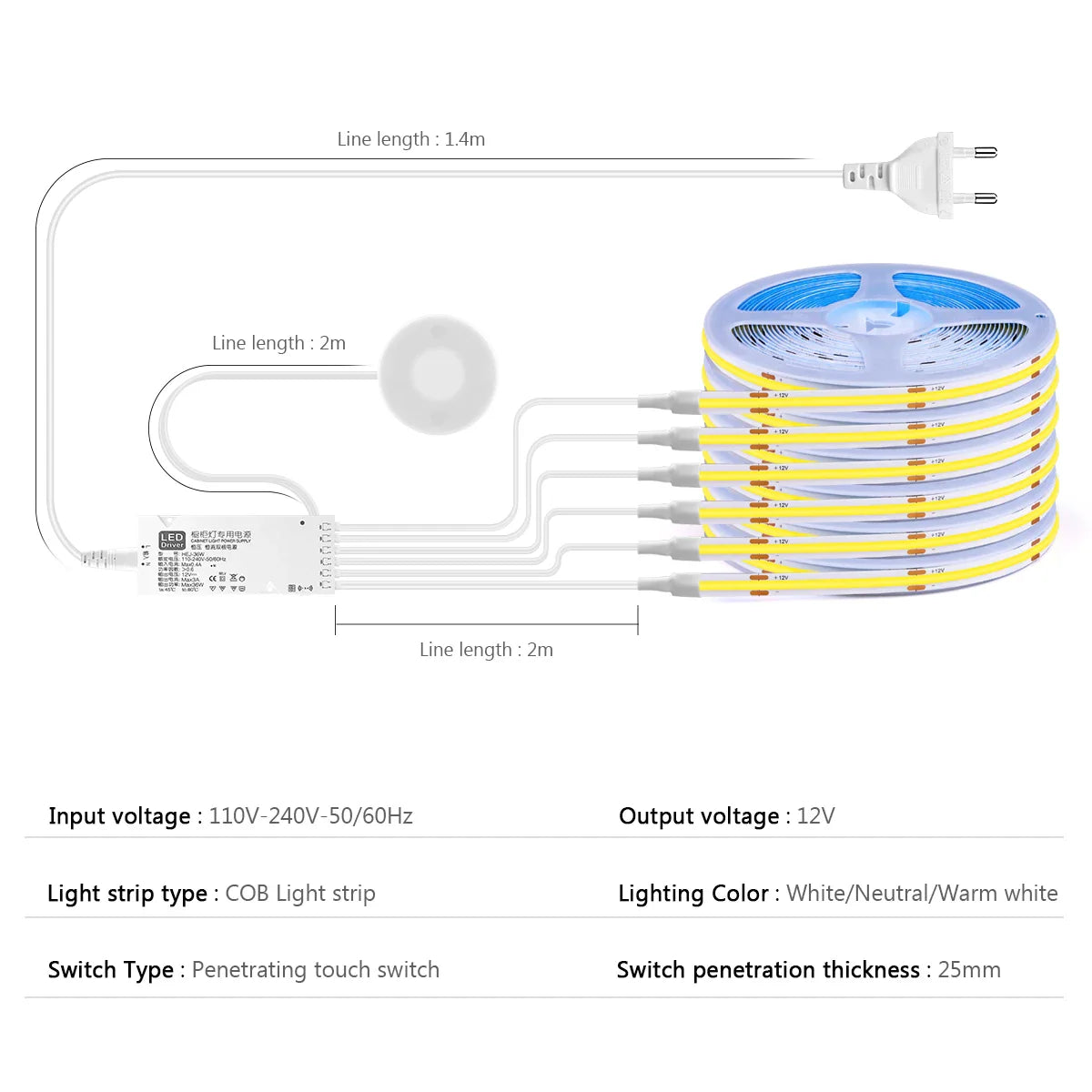Single Power Supply Closet Dimmable Touch Sensor COB LED Strips