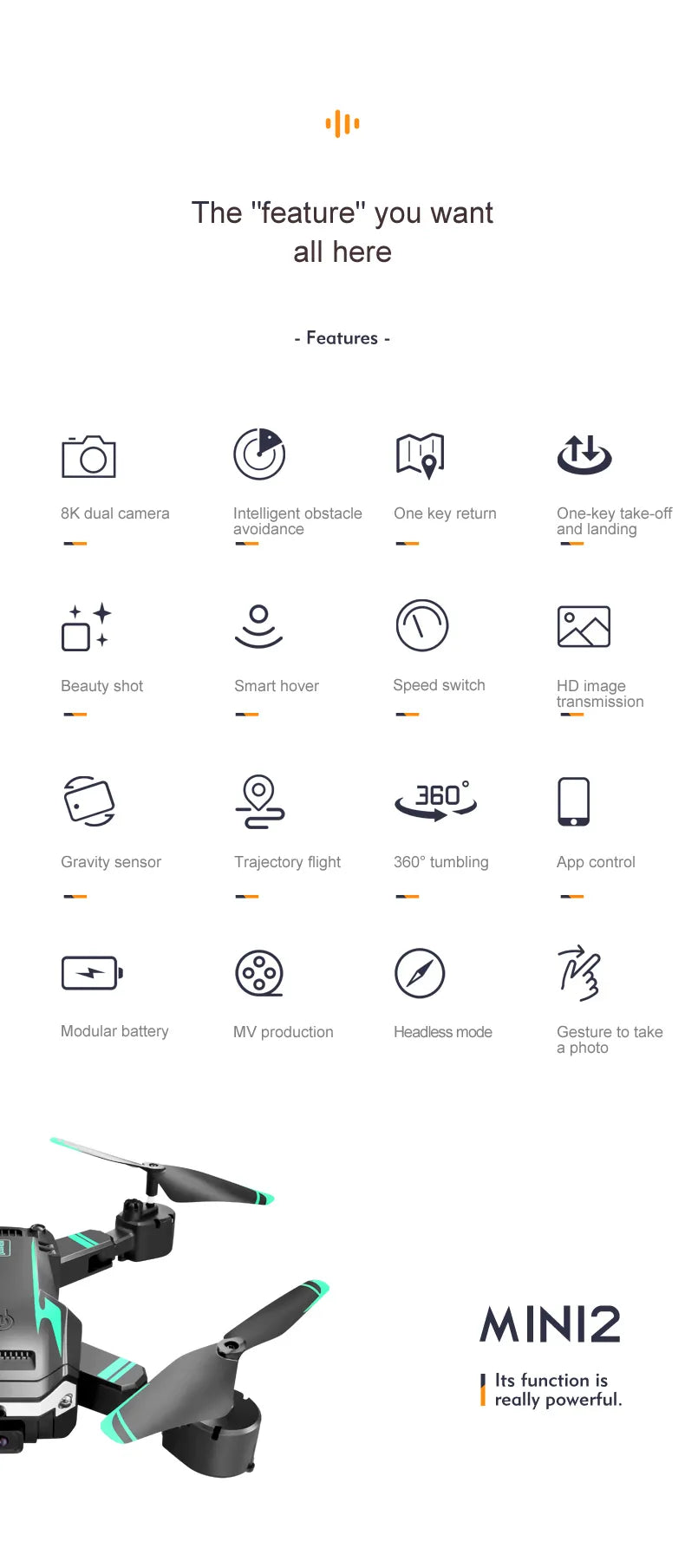 High-Quality Aerial Photography: with 5G WIFI 8K Dual cameras, both with a wide 120° field of view. Capture breathtaking images and videos in stunning high-definition quality.