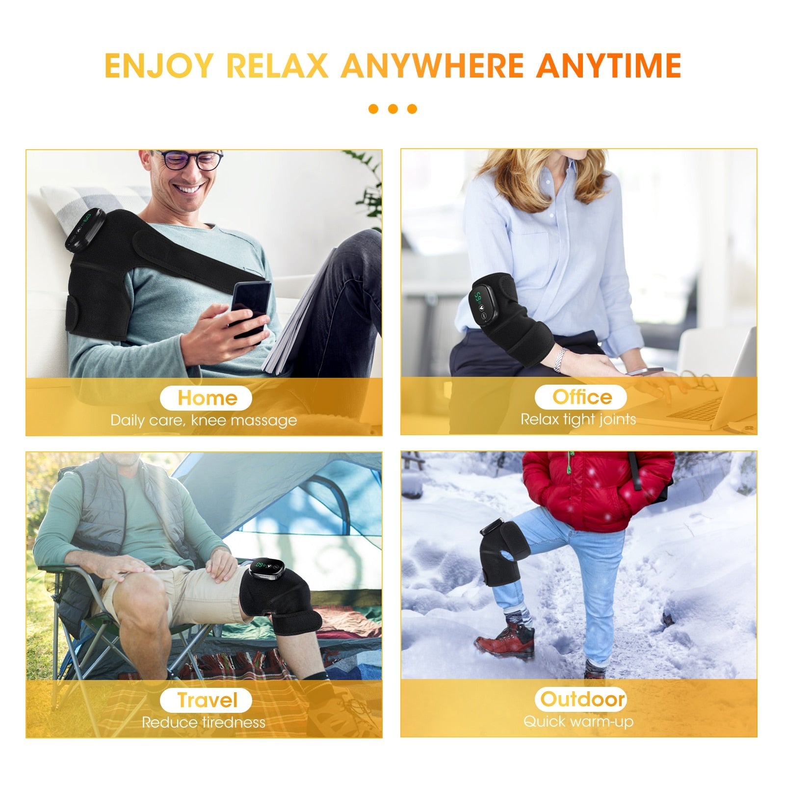 Experience the synergy of advanced technology and traditional healing methods with our multi-functional knee massager. This device is engineered to address muscle soreness, cramps, and fatigue by enhancing blood circulation and promoting swift recovery for injured areas.