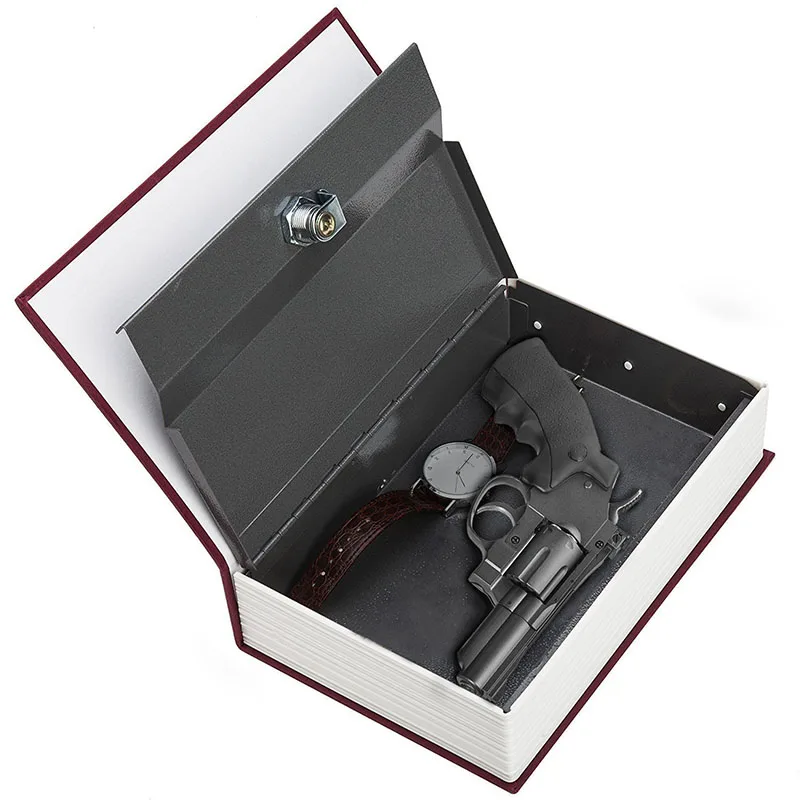 - The mock dictionary contains a metal safe with key/code lock, for easy access to your valuables.