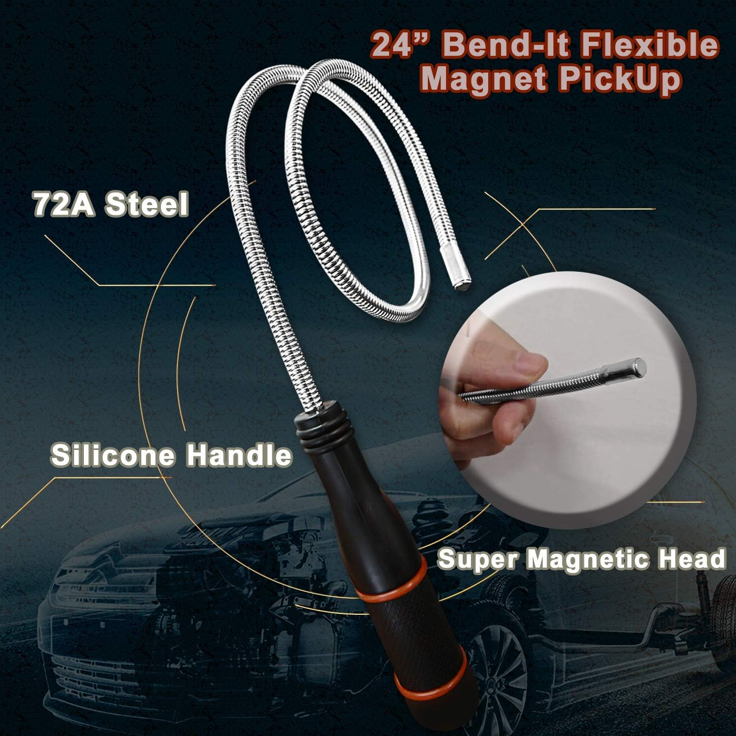 It has a strong magnetic head, a bendable stainless-steel shaft, and a non-slip handle, so you can guide it exactly where you need with minimal effort—and avoid unnecessary strain on your back and knees.