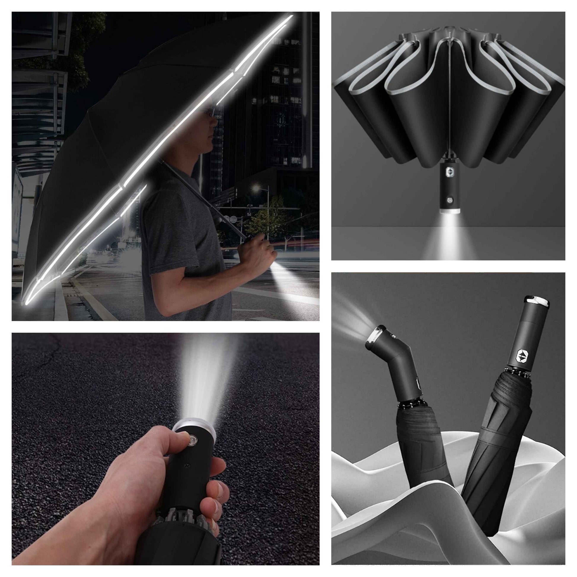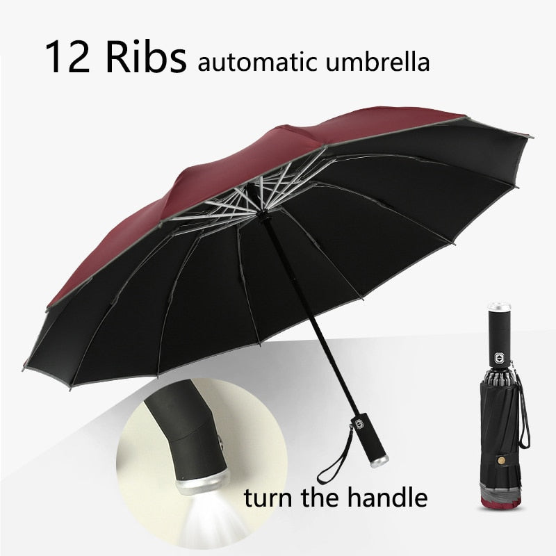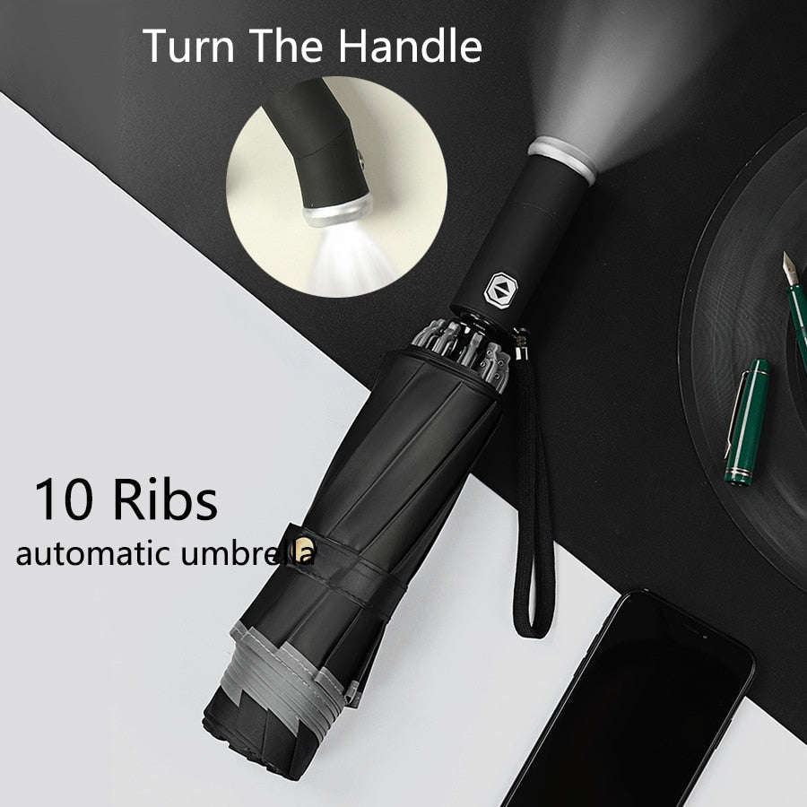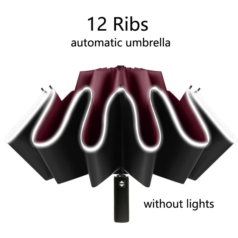 Fully Automatic Reverse Umbrella With LED Flashlight
