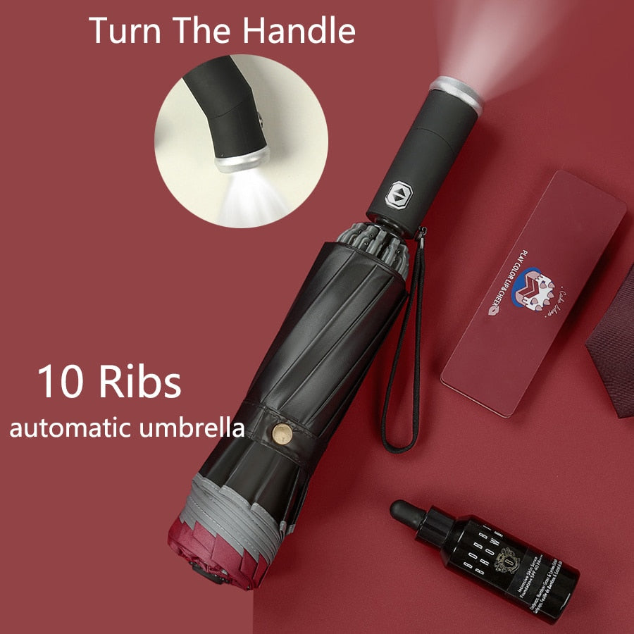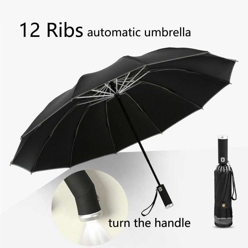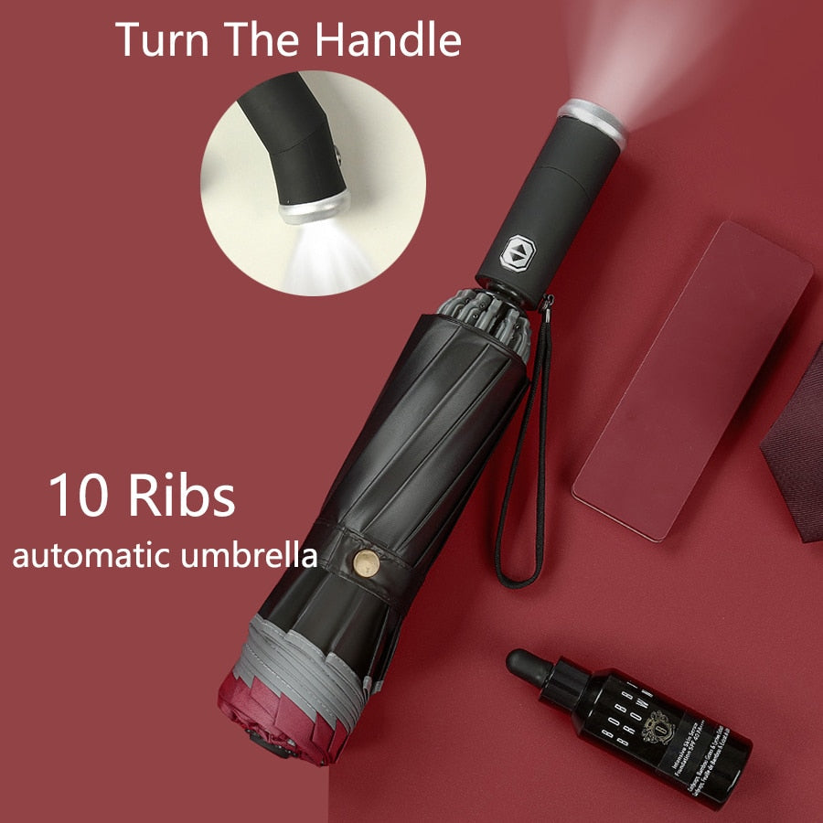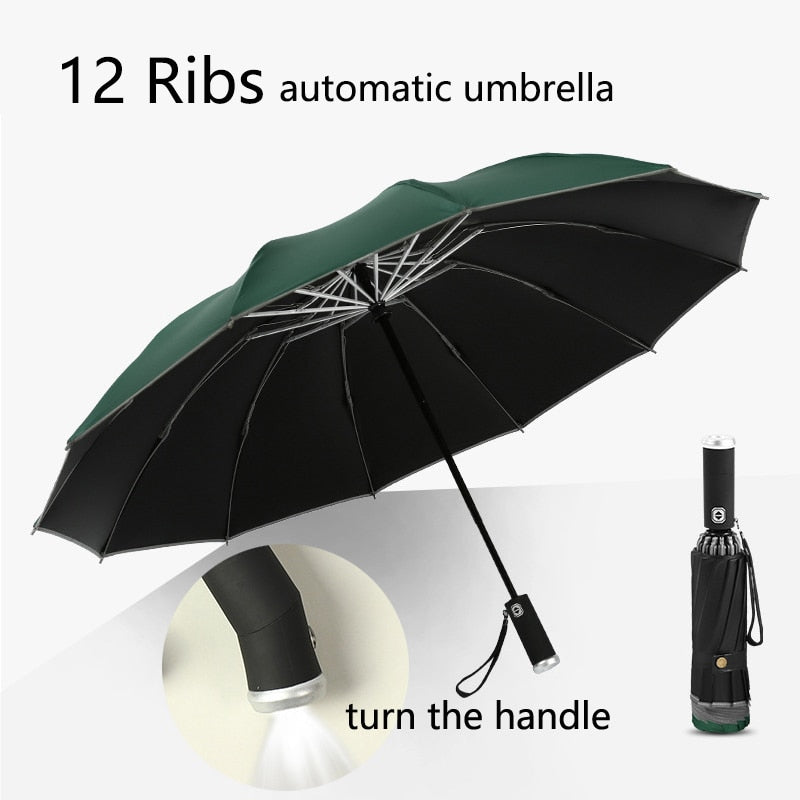Fully Automatic Reverse Umbrella With LED Flashlight