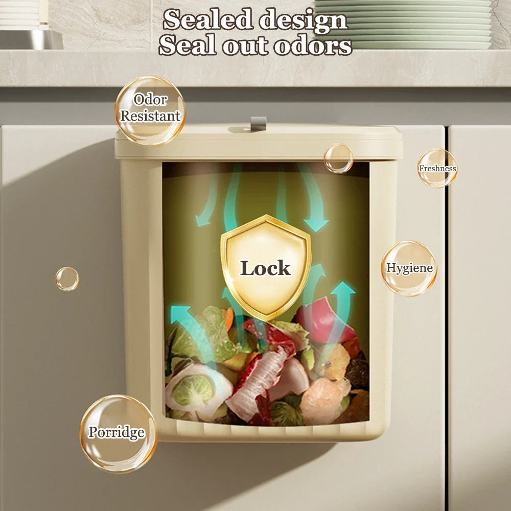 Odor-Blocking Lid: Keep your kitchen fresh and odor-free with this trash bin’s secure lid. Designed to block unpleasant smells and prevent fruit flies, it helps maintain a clean and hygienic environment, making it perfect for composting and everyday waste.