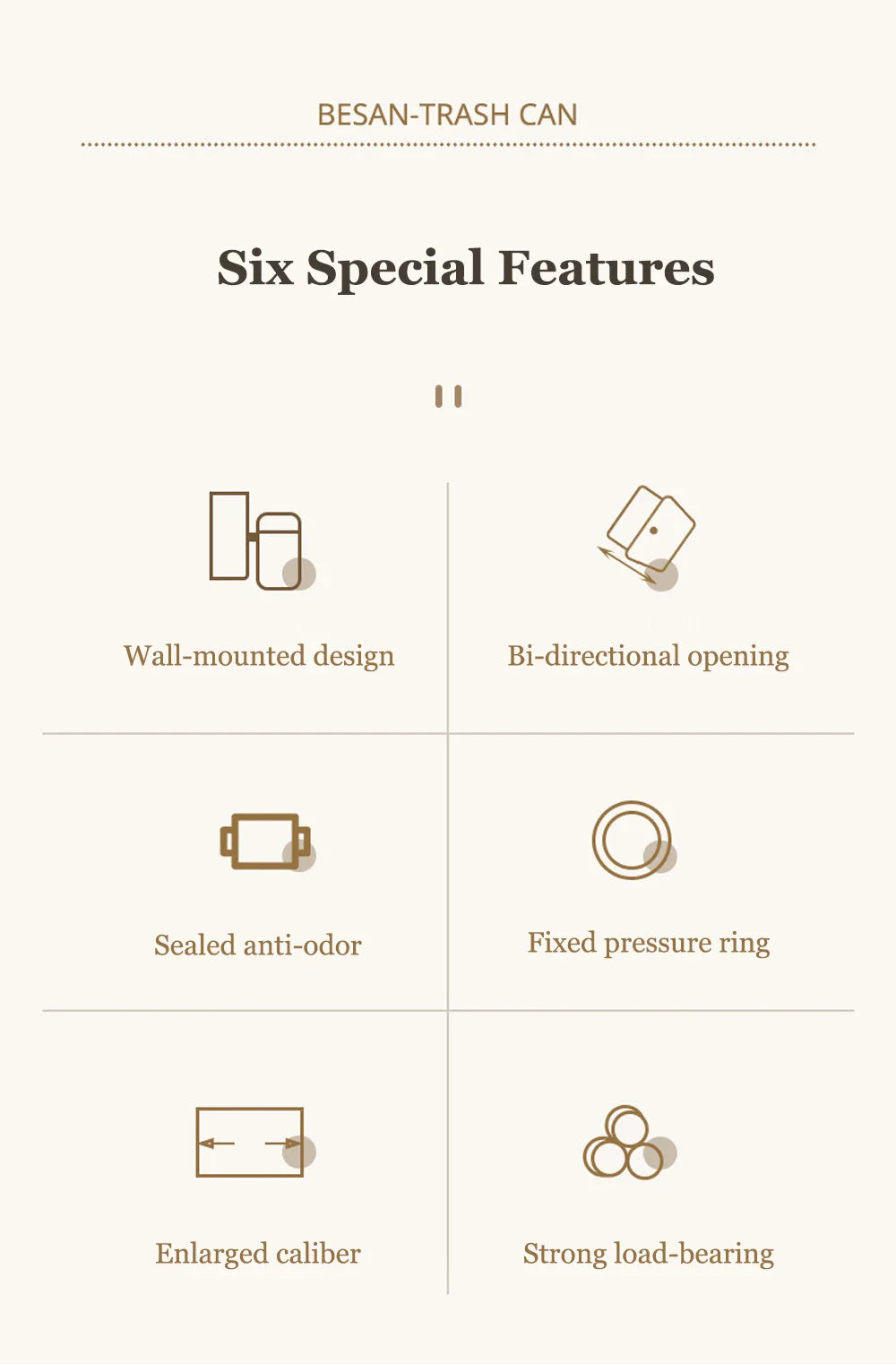 Japanese Wall/Cabinet Doors Mount Two-Way Opening Odor-Blocking Trash Can