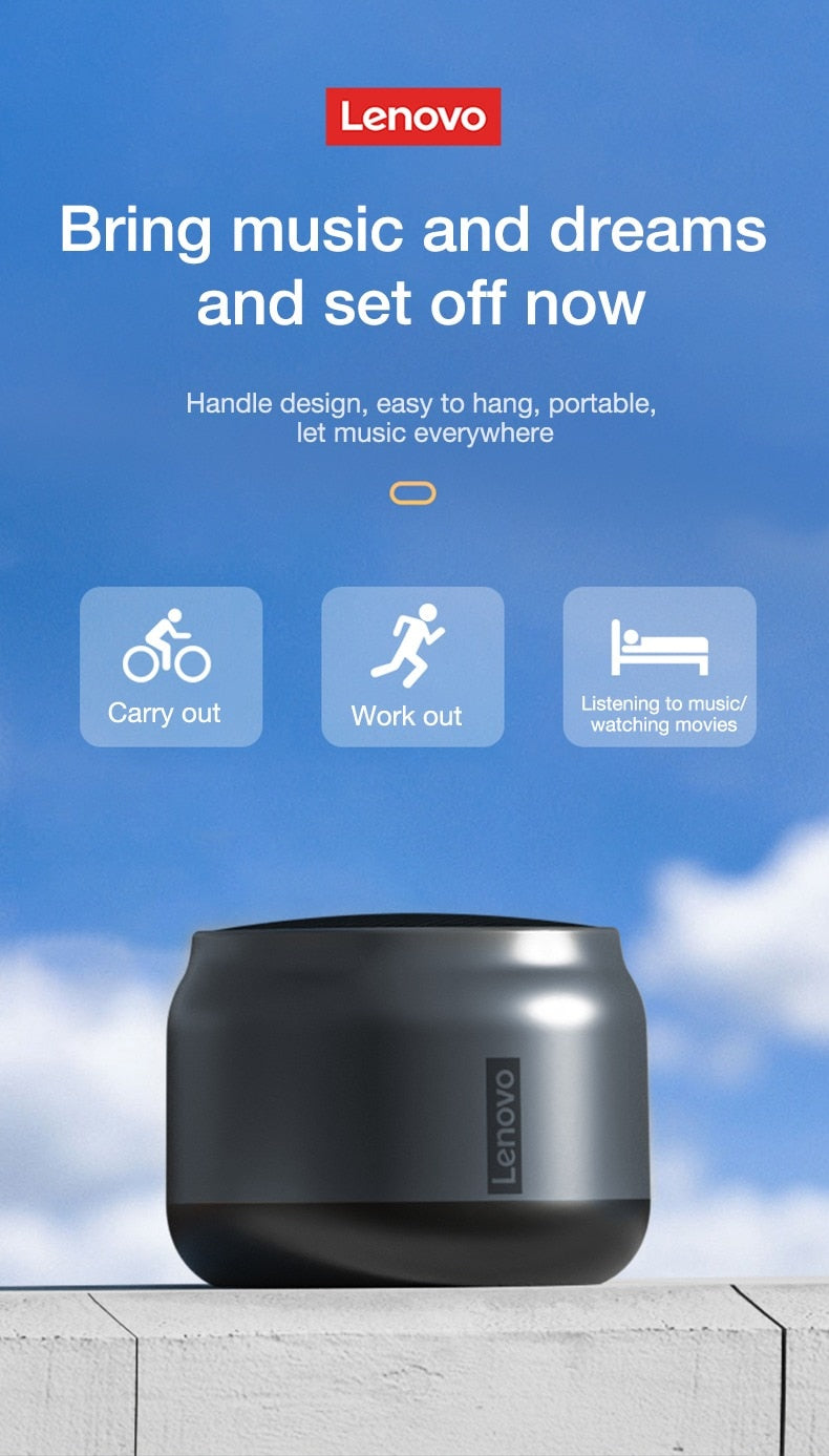 Lenovo K3 Hifi Bluetooth Wireless Speaker Is Designed With A Powerful Bass, Hi-Fi Sound, Bluetooth V 5.0, Long Lasting Battery, 10 Meters Distance Transmission, Built-In Mic For Hands-Free Calls, And Universal Compatibility!