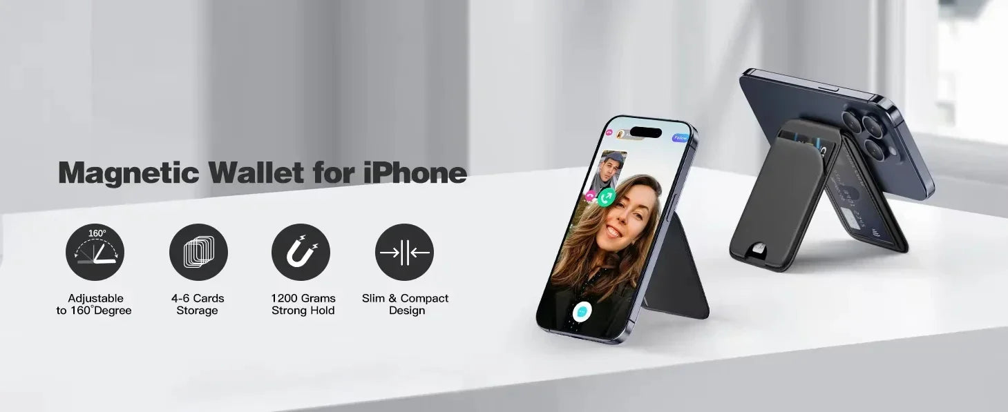 The Magnetic Wallet Phone Stand is the smarter, sleeker, and safer way to carry your essentials while staying connected.