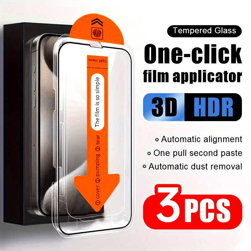 One-Click EZ Installation HD Clarity Tempered Glass Oleophobic Coating Screen Protector (3pcs)