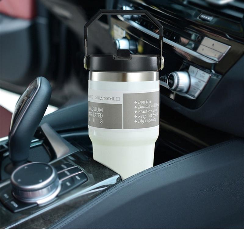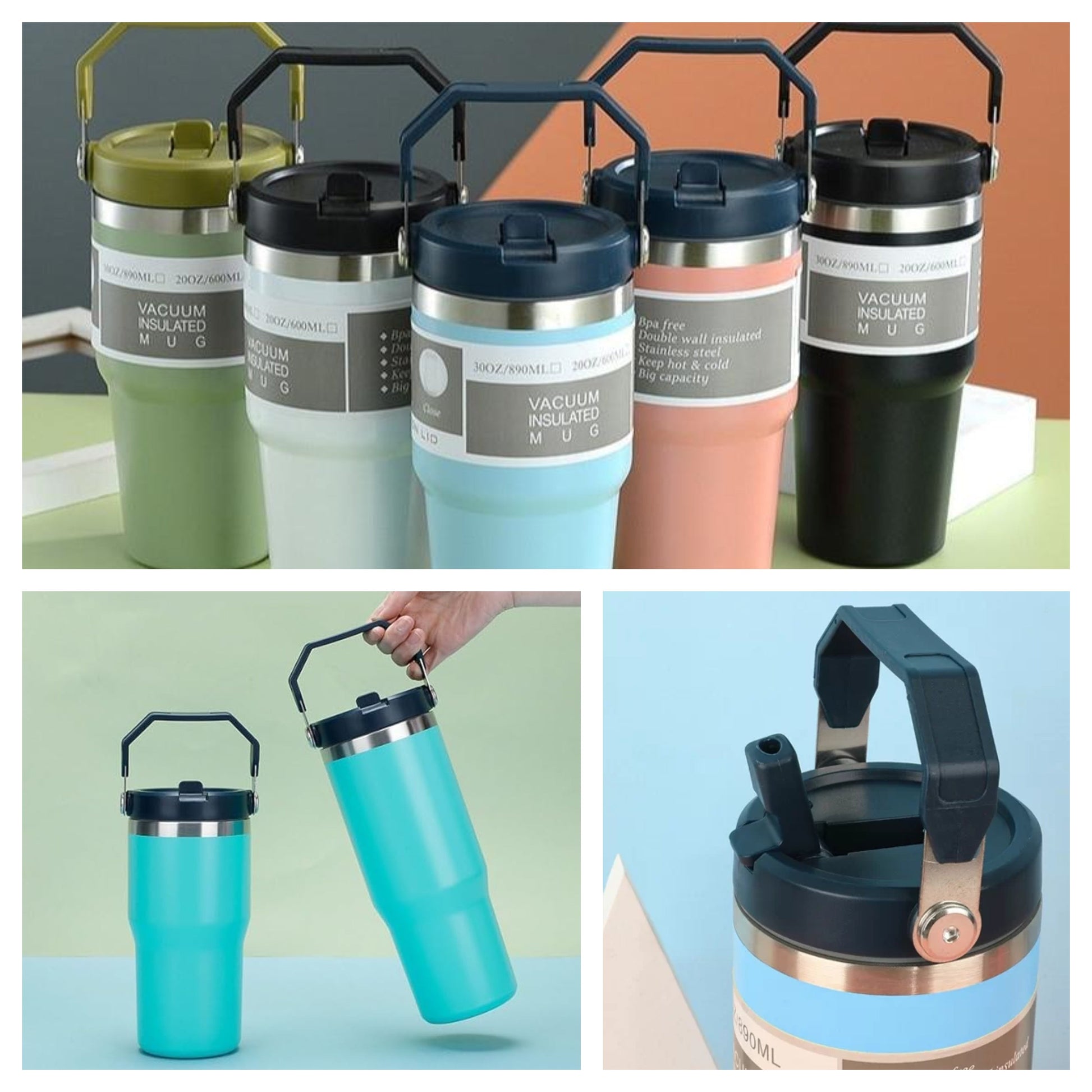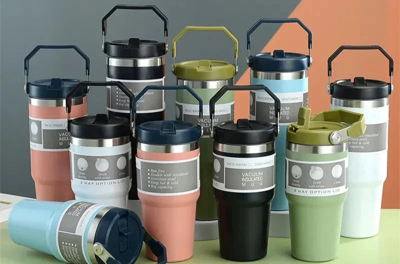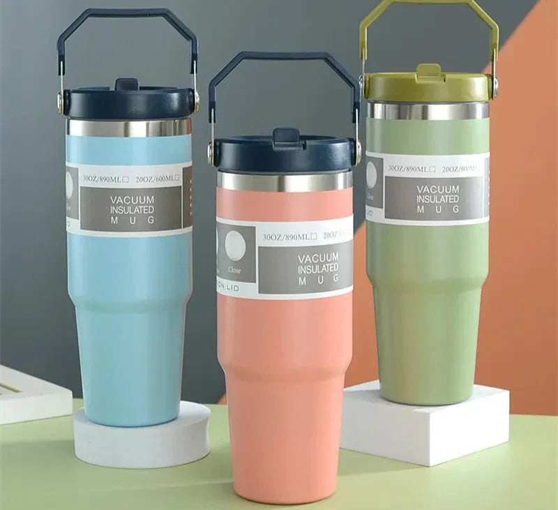 Stainless Steel Double-Wall Vacuum Tumbler With Built-in Straw & Fold-Down Handle