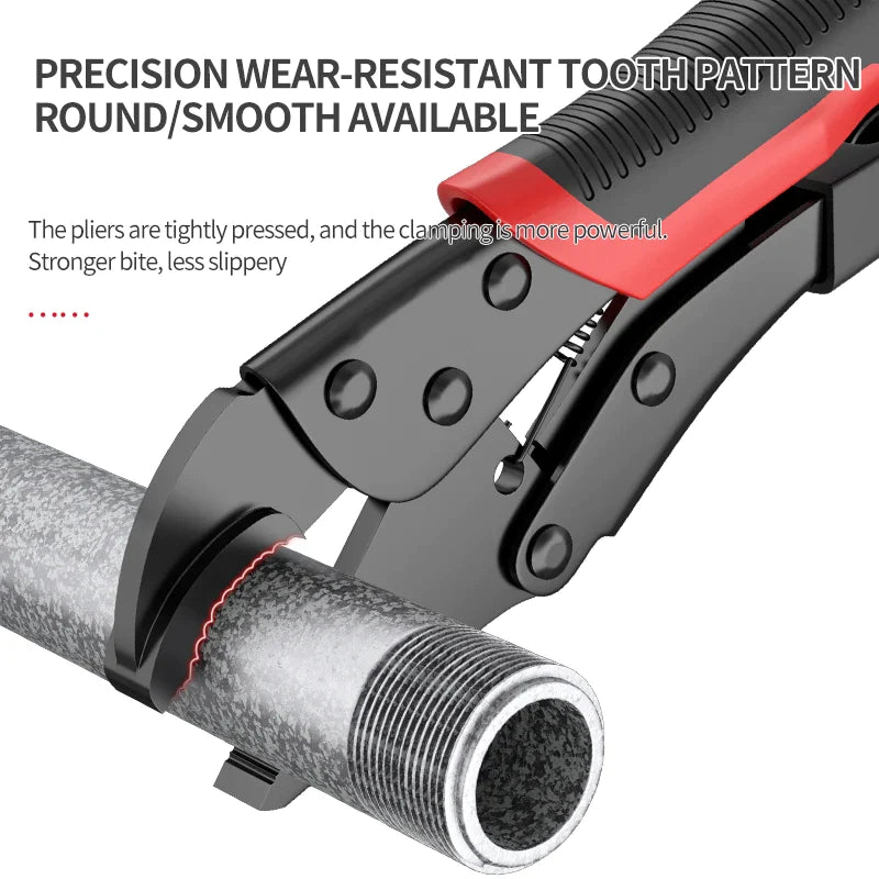 Versatile Jaw Design: Featuring straight jaws for universal use and curved jaws for efficient tightening, clamping, and turning of round objects, these pliers offer versatility in functionality. Strengthened teeth on both jaws provide a stronger grip for enhanced performance.