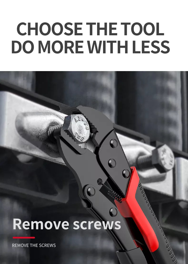 With versatile straight and curved jaws, adjustable clamping pressure, and ergonomic anti-slip handles, it's perfect for tightening, clamping, and turning round objects with ease.