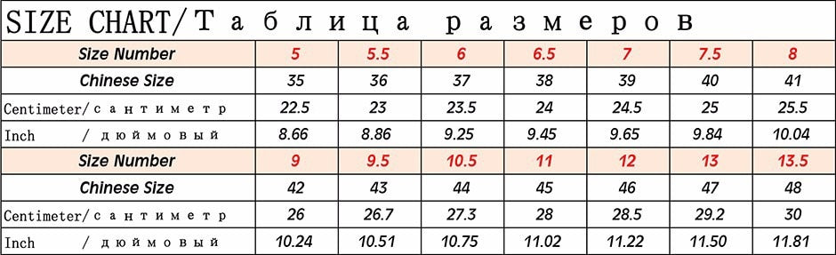 Please make sure you take the right size for you by following carefully this size chart, make sure you measure your feet properly in order to confirm the right size according to this size chart.