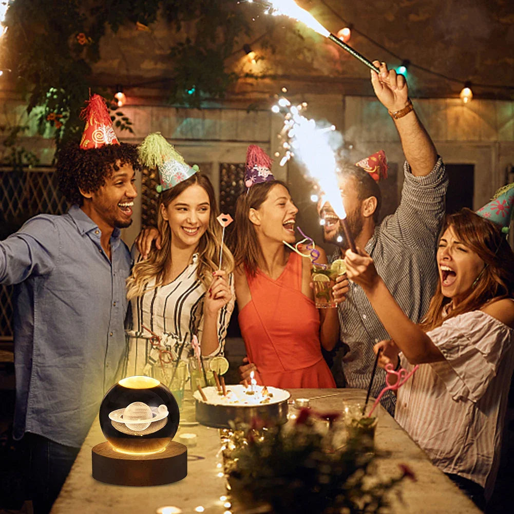 Artistic Night Light: More than just a decorative item, this lamp serves as a gentle night light, casting a soft and inviting glow. Ideal for creating a cozy atmosphere, it enhances bedrooms, living rooms, and workspaces alike. The delicate planetary details inside the crystal add a sense of peace and tranquility, making it perfect for unwinding in the evening.