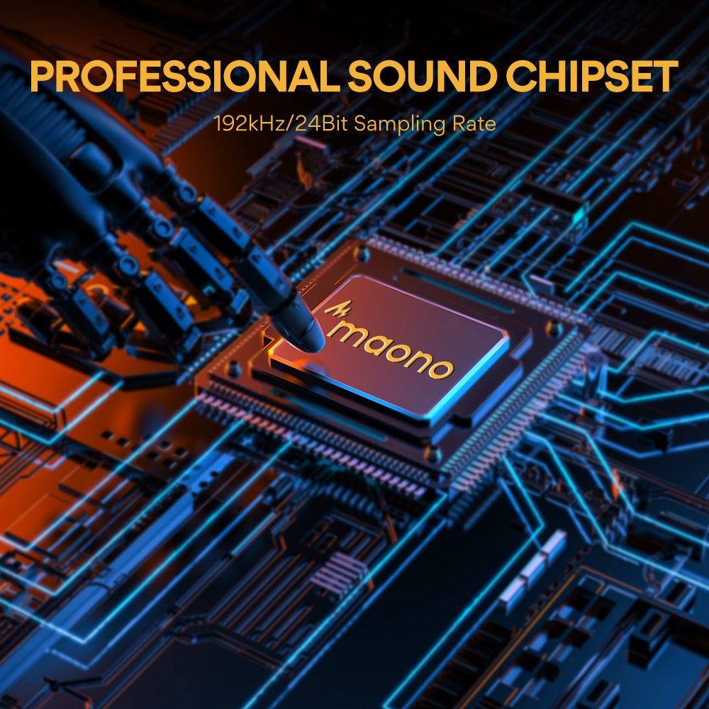 The USB microphone has a built-in professional sound chipset, with a 192KHZ/24BIT sampling rate, which captures clear and smooth sound during zoom meetings or gaming. The cardioid pickup pattern suppresses unwanted background noise and captures clear sound.