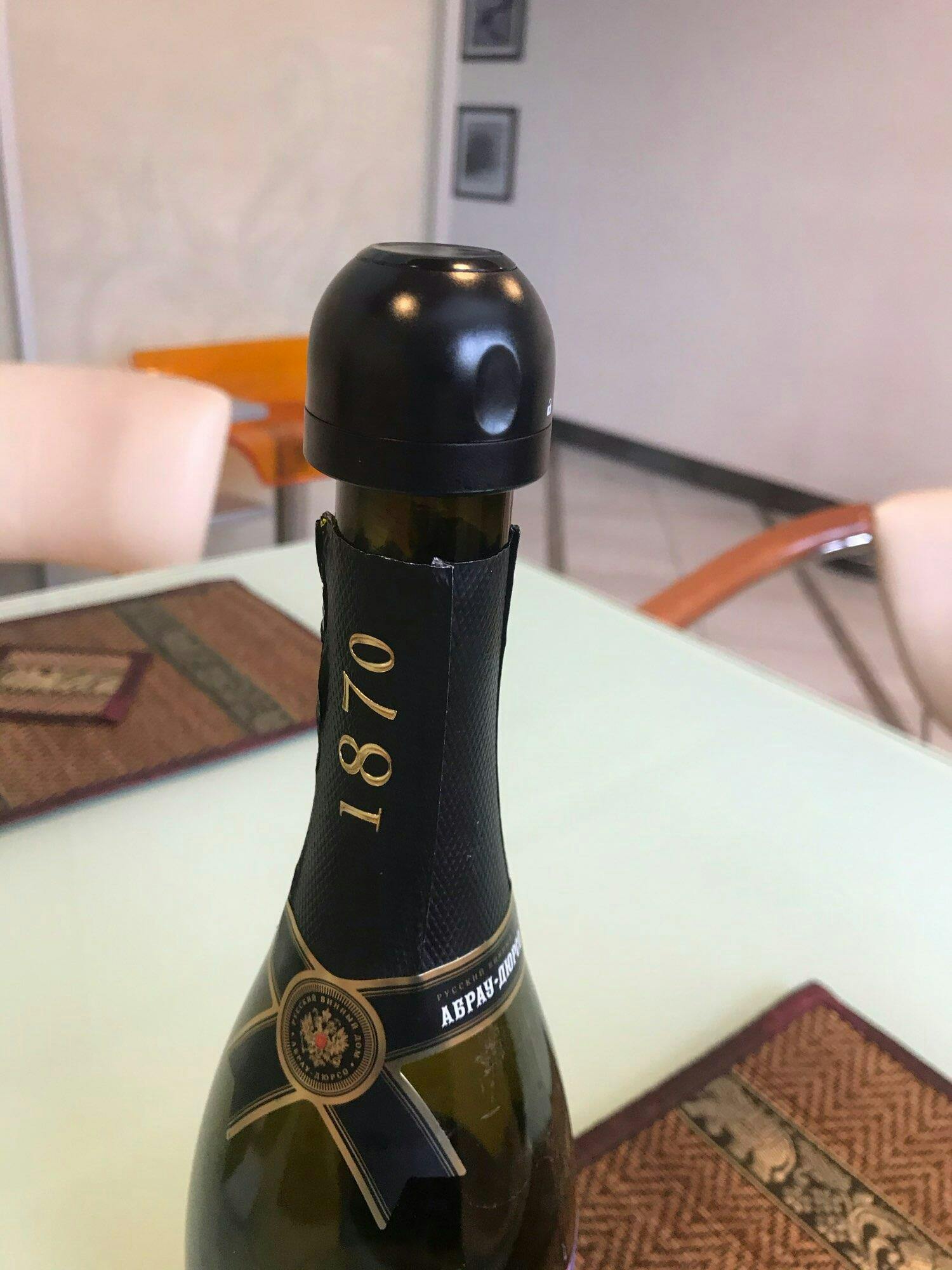 Step 2. Now, pick up your already opened champagne bottle and place the vacuum stopper on top of the bottle.
