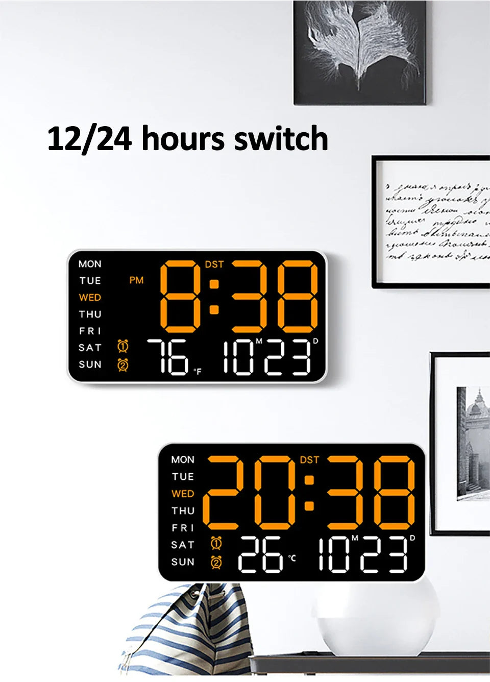 12/24 Hour Format Switch: Switch between 12-hour and 24-hour time formats effortlessly. A simple press of the "+" or "-" button adapts the display to your preferred time format.