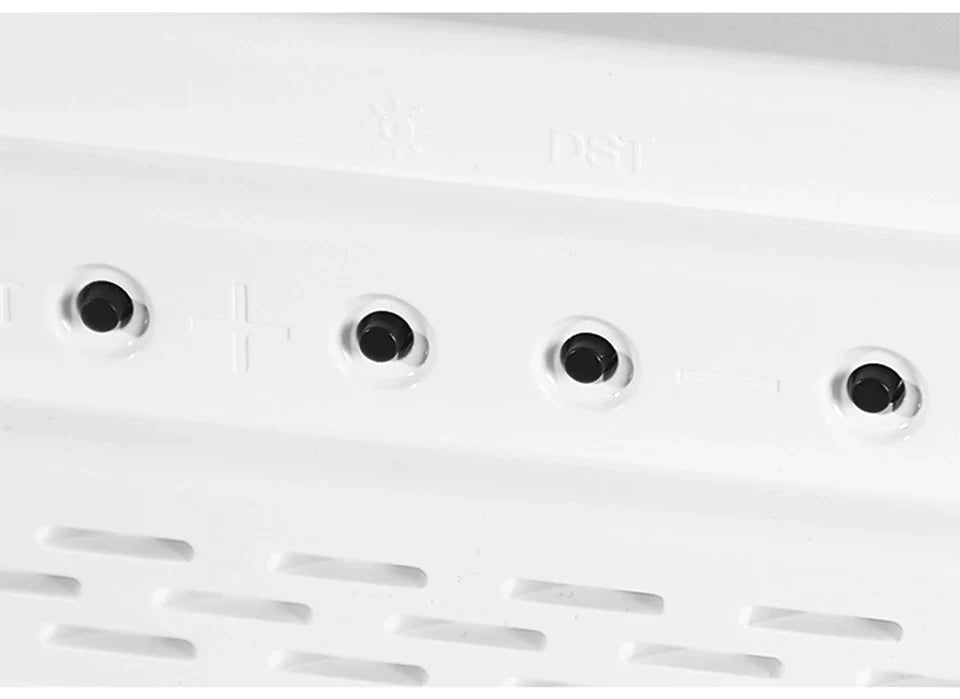 DST Function: Easily toggle Daylight Saving Time (DST) mode by pressing and holding the "-" button for three seconds. Simplify seasonal time changes with this intuitive feature.