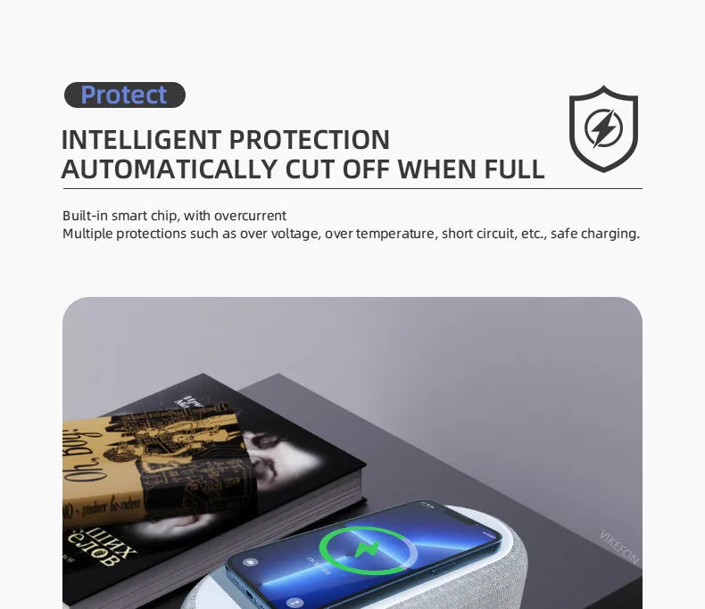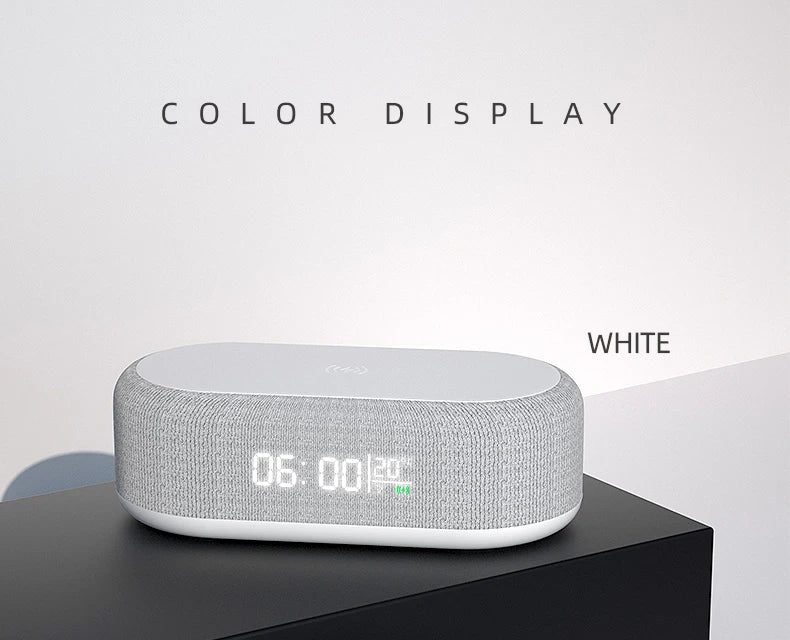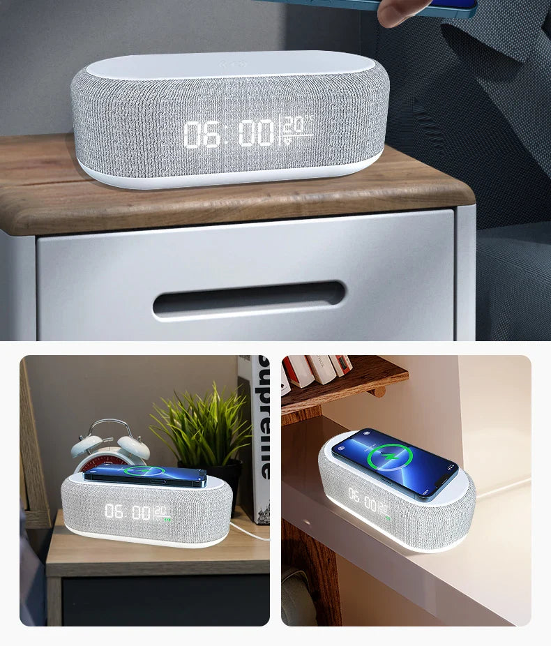 Introducing the Wireless Charger Alarm Clock: the ultimate multifunctional bedside or workspace device.